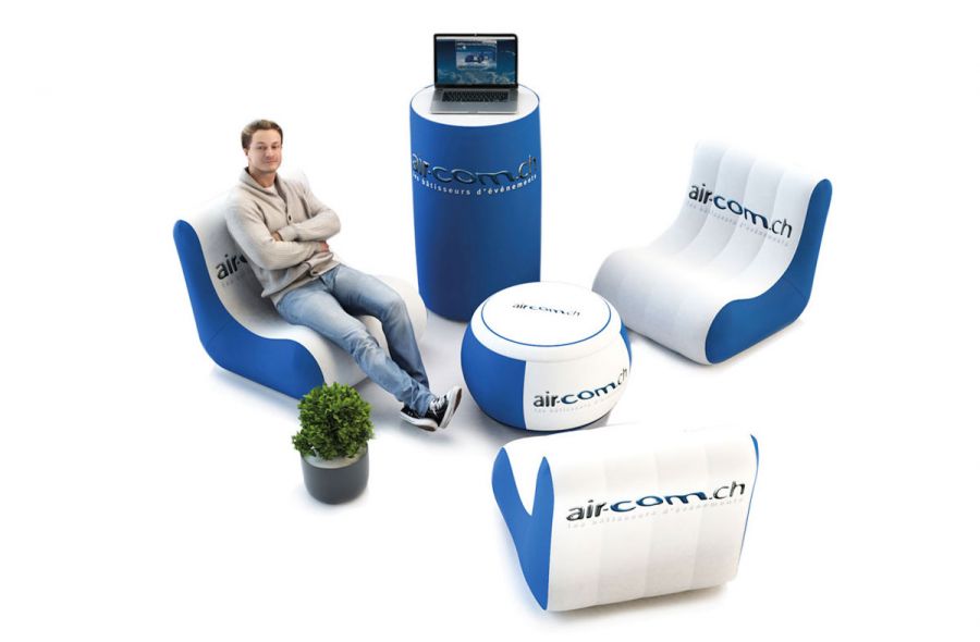 « Whaw effect » garanti avec cet ensemble de meubles gonflables et 100% personnalisables. C’est désormais certain, chacun se souviendra de votre accueil sur votre stand d’exposition ou sur votre événement. Air-Com, si vous le souhaitez, s’occupe de l’installation et du stockage de votre matériel.