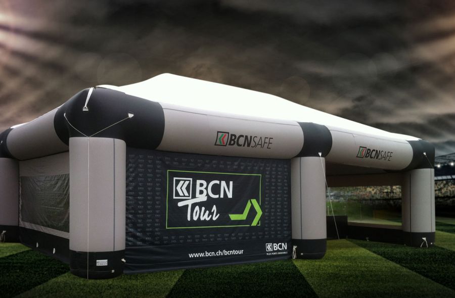 Notre tente « BCN Safe » est bien connue des sportifs de la région neuchâteloise. La personnalisation d’une telle tente est facilement réalisable. Impact maximum. Air-Com, si vous le souhaitez, s’occupe de l’installation et du stockage de votre matériel.